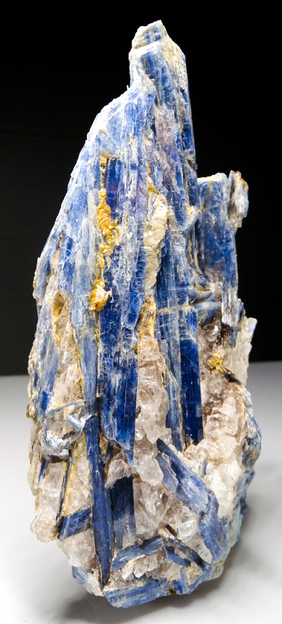 Older specimen of blue Kyanite crystals in Quartz from Minas Gerais, Brazil. A big piece with big crystals to about 14cm long. Impressive large display piece that is not often seen anymore.