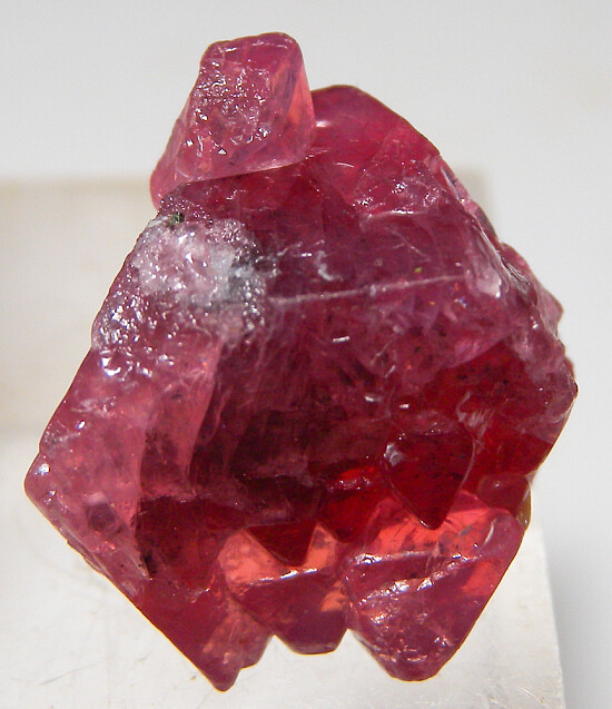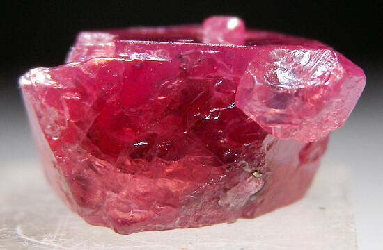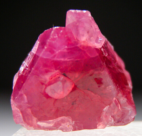 Octahedral pink/red Spinel crystal from Tanzania. It's mostly complete (just contact at one tip) with rich color and glassy faces. Nice one!