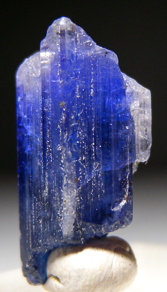 Single translucent blue Tanzanite crystal. Complete all around with a stepped termination and some attached Graphite. Undamaged though with contacting on part ofthe termination.
