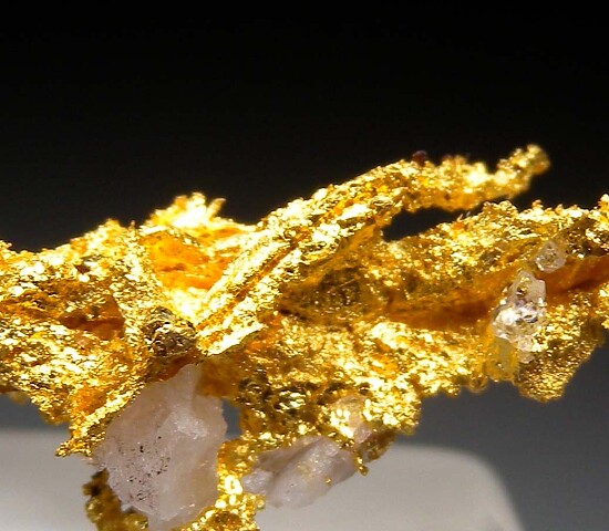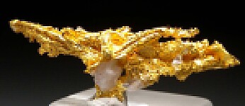 Bright metallic 3.1cm spinel twinned Gold crystal group from recent finds in Morocco. Well crystallized with a smaller spinel twin that wraps across the larger crystal. Weighs 2.48 grams.