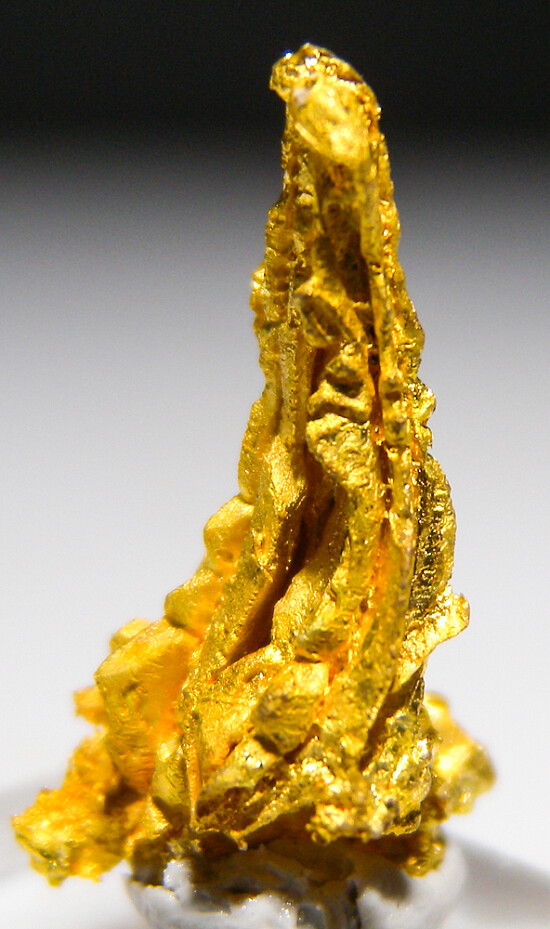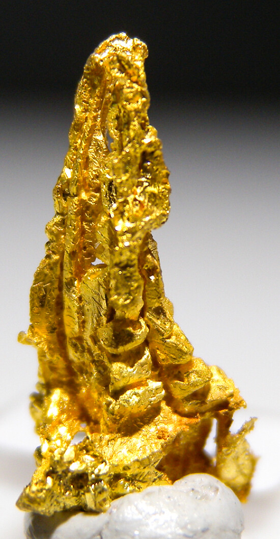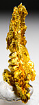 Bright metallic 1.7cm spinel twinned Gold crystal group from recent finds in Morocco. This is an aesthetic cluster with two main spinel-twin crystals rising up together from a thicker base. Weighs 1.36 grams. Ex. Jon Sigerman.