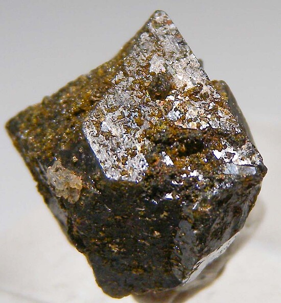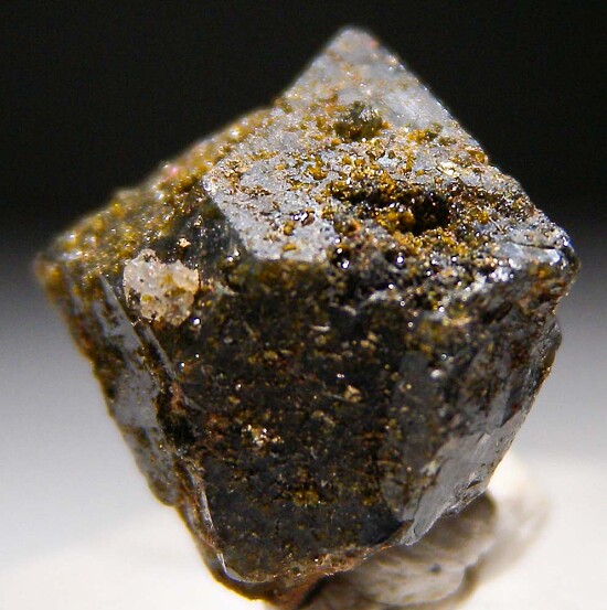 Thick single crystal of blue Scorodite crystal lightly coated by golden brown Beudantite crystals (an uncommon lead, iron arsenate mineral). Complete floater single crystal.