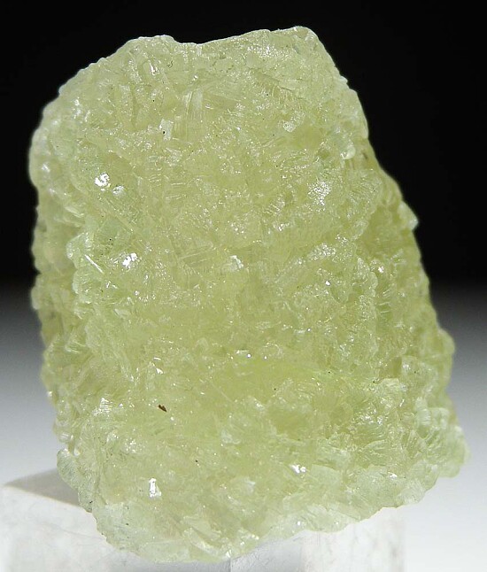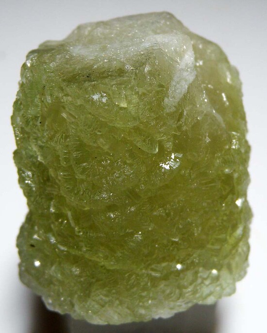 Prehnite from the Merelani Tanzanite mines is well known as some of the best in the world. A seldomly seen oddity of this material are pseudomorphs of Prehnite after Quartz crystals. I have seen hundreds of Prehnite specimens from this locality and only rarely see one of these pseudomorphs. This specimen is a partial Quartz crystal that has mostly been pseudomorphed to Prehnite.