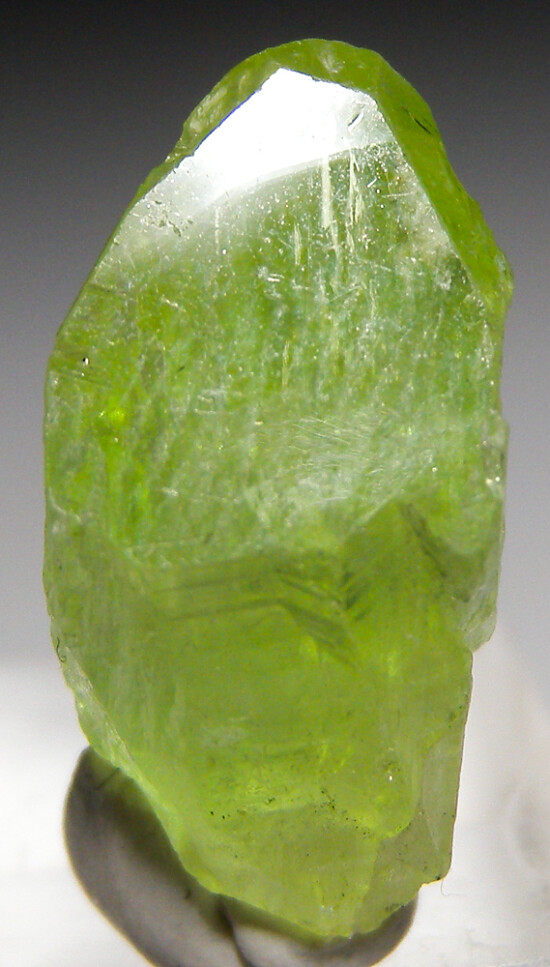 Single green Diopside crystal from the Merelani Tanzanite mines. Gemmy and well terminated with a bright mint green color.