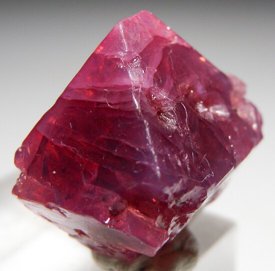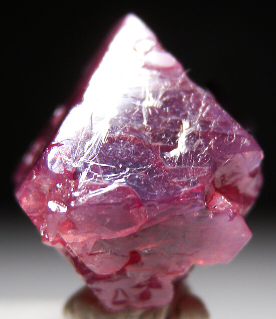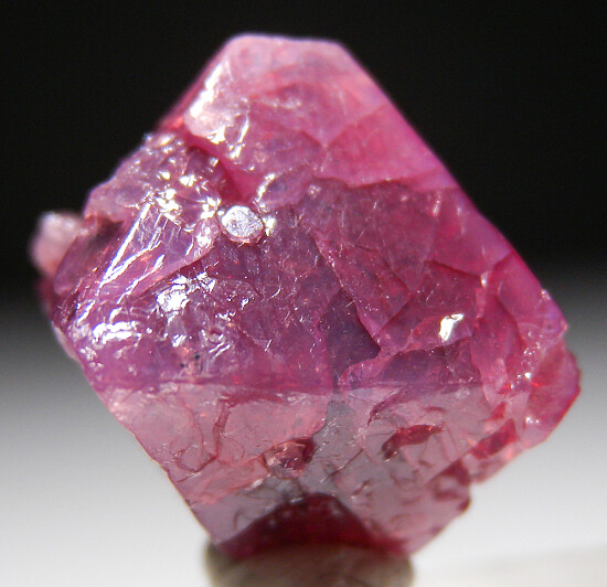 Sharp single octahedron of translucent red Spinel. Good crystal and I don't have many of these left!