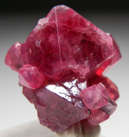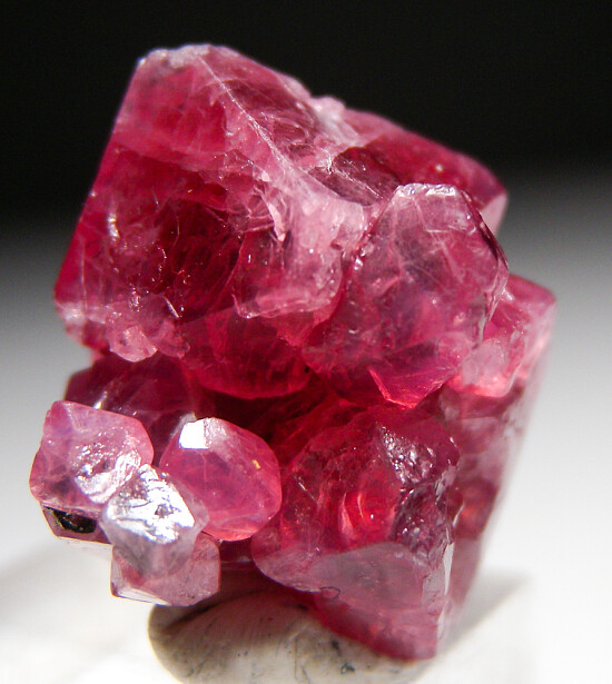 Fine qualiyt cluster of about 10 Spinel crystals. Good crystals faces all around, top to bottom. Translucent with good red/pink coloration. Nice cluster of crystals!