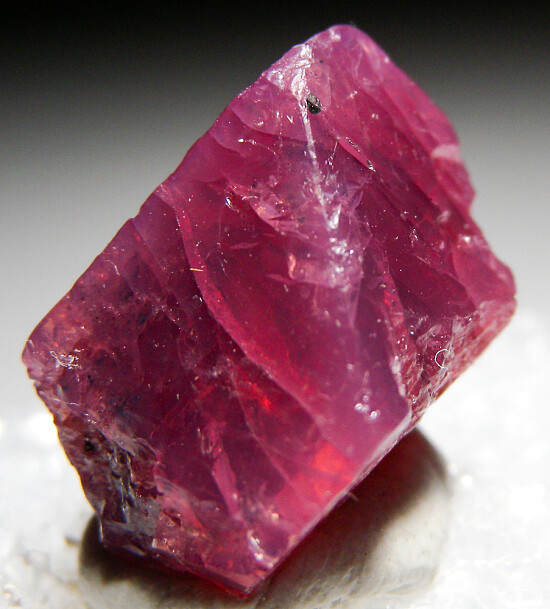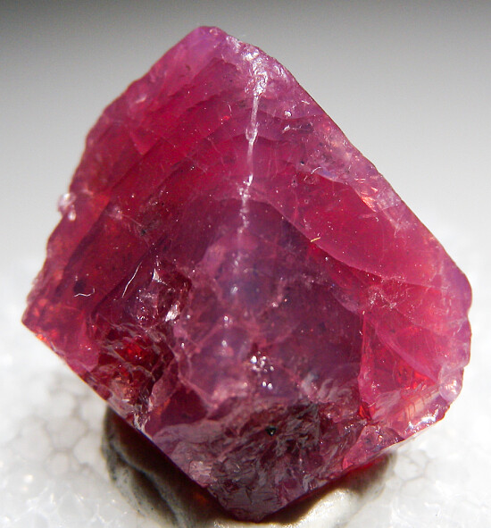 Sharp single Spinel crystal from Mahenge, Tanzania. Translucent with pink to red coloration. This locality has produced some of the world's finest pink Spinel gemstones and ocassionally good crystals make it out.