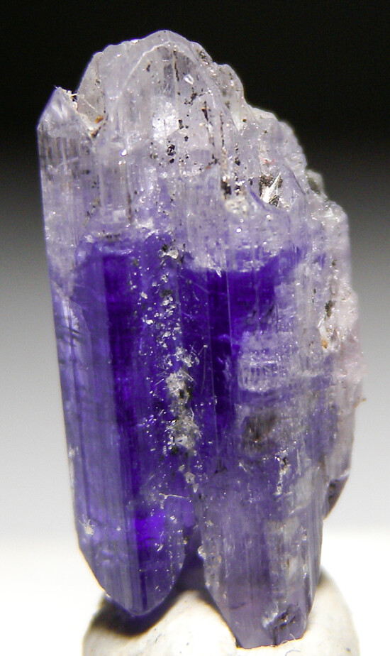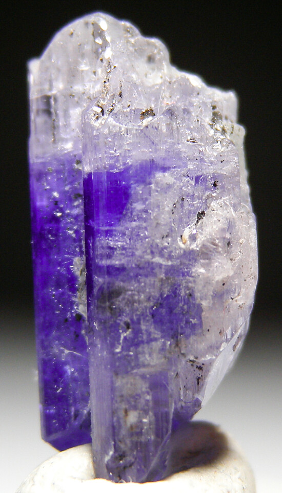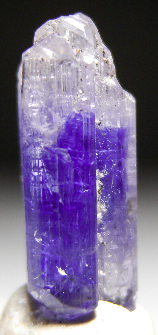 Color zoned single Tanzanite crystal that's partially double terminated. Nicely translucent with glassy surface luster.