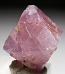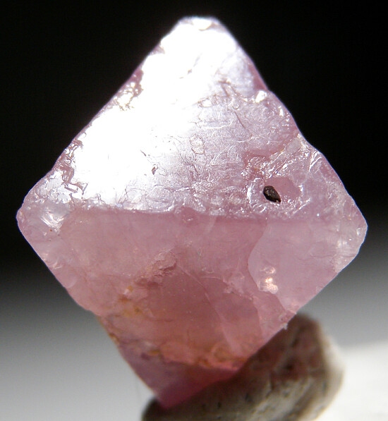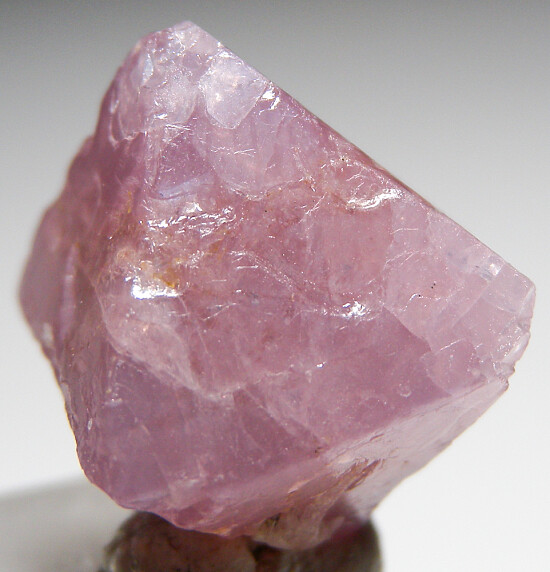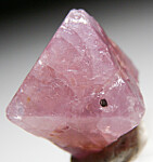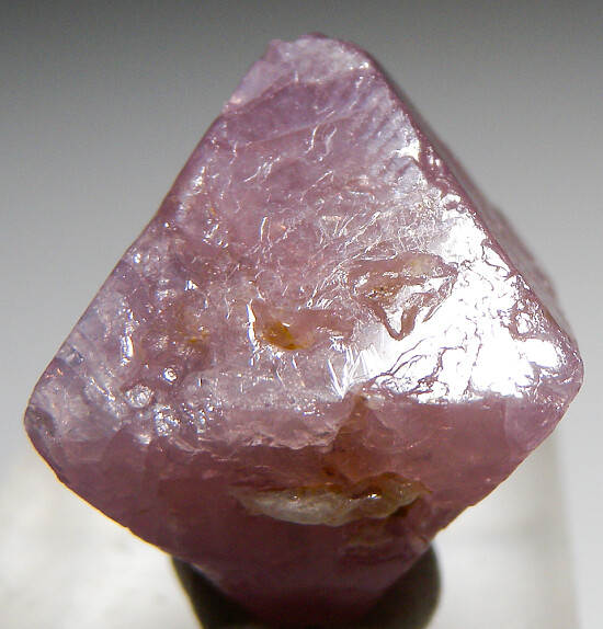 Pink/lavender octahedral Spinel crystal from Tanzania. This is a nice complete crystal with a uniform shape and good edges. Hazy translucent with transparency in areas.