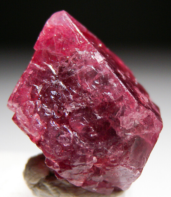 Deep red single Spinel crystal from Mahenge. Crystallized on all sides.