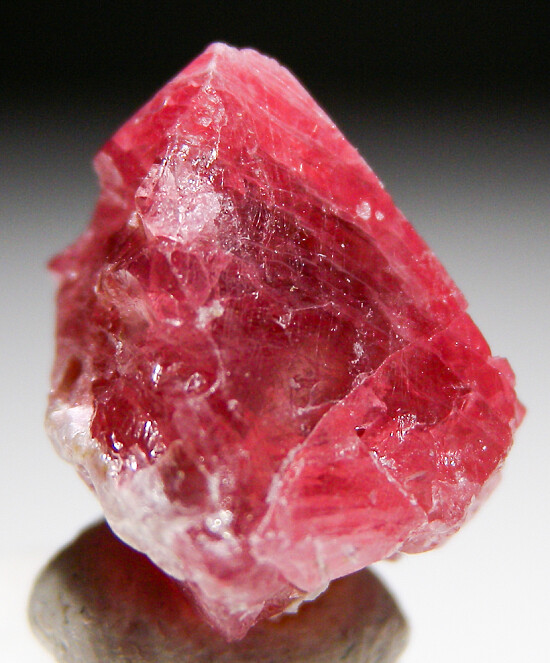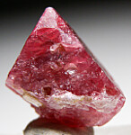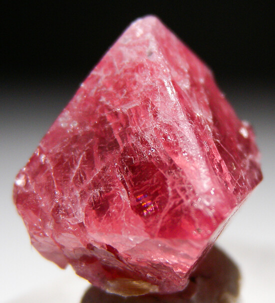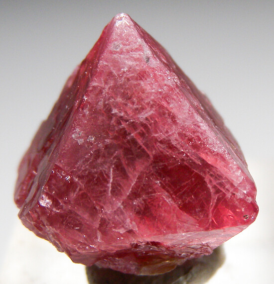 Octahedral red Spinel crystal from Mahenge, source of some of the world's best Spinel. This crystal has sharp faces and some attached mica on the back.