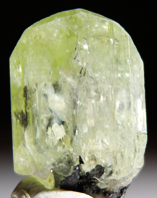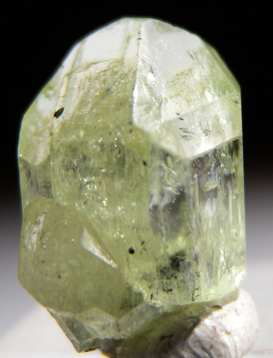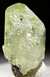 Fine quality single Diopside crystal with a small side crystal. These are recovered as byproducts of mining for Tanzanite and are among the finest Diopsides known. This is a complete and undamaged crystal with smooth flat faces all around. Medium 'mint' green in color and gemmy.