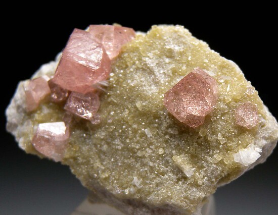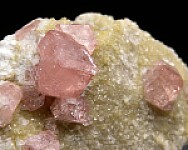 Glassy pink Grossular crystals to 8mm in size on matrix. Beautiful transparent crystals with pure pink coloration.