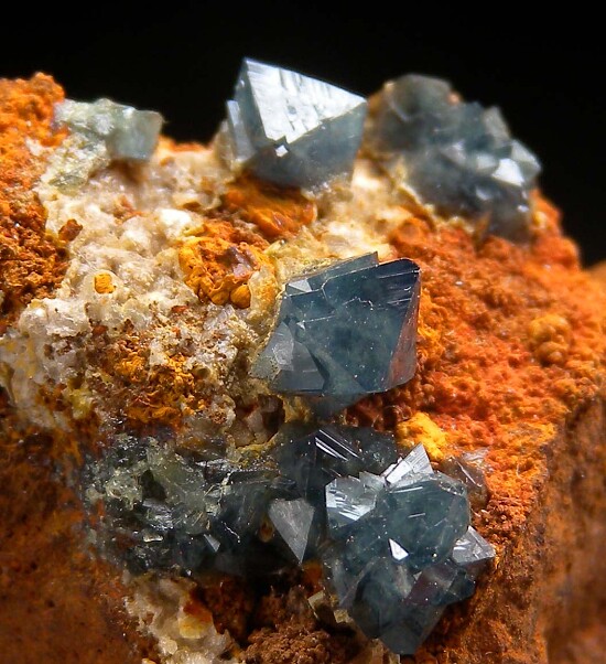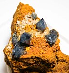 Limonite matrix with well isolated crystals of translucent blue Scorodite. The crystals reach 4mm in size and stand up nicely off the matrix for good viewing from any direction.