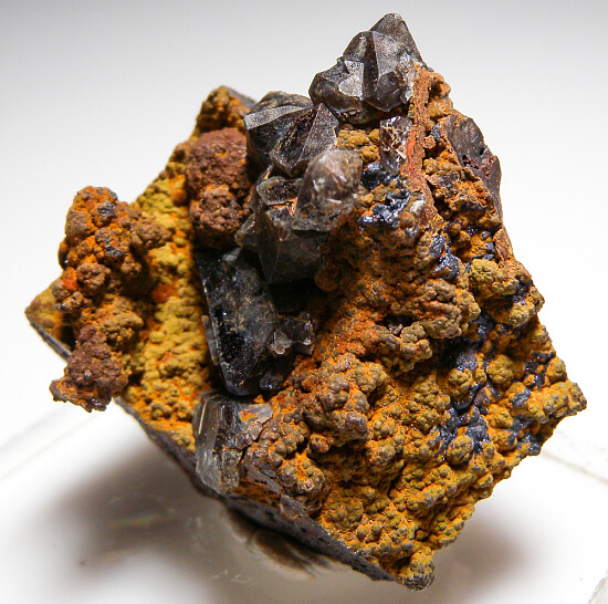 Large, sharp Scorodite crystals on matrix. These crystals of translucent reddish Scorodite were noticed by Marshall Sussman as being unusual and he had them analyzed to assess the possible cause of the color. Trace Copper and Cobalt were detected though no conclusive results were obtained. The crystals reach 9mm in size and are large and aesthetic!