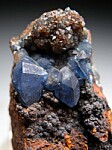 Limonite matrix with large crystals of translucent to transparent blue Scorodite. The crystals reach 9mm in size and have great color and good sized areas of transparency.