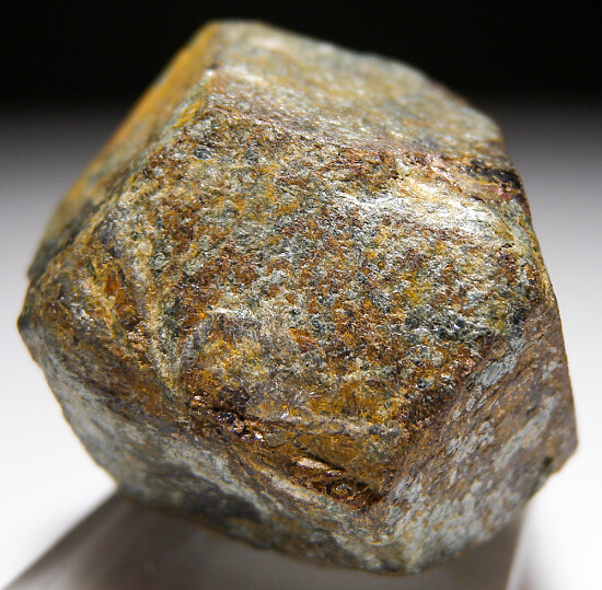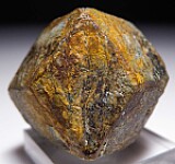 A large, well formed, complete single Almandine crystal from Colorado slightly covered by chlorite schist. From MINDAT: 'A Cu-Pb-Zn-Au-Ag occurrence/mine located 4 miles north of Salida, discovered in the early 1880s and worked intermittently until 1923. The Sedalia was the largest copper mine in Colorado, producing also zinc and a bit of gold and silver. The Sedalia Mine is well known among mineral collectors as a source for good specimens, particularly the large, euhedral almandine garnets weighing up to fifteen pounds'.