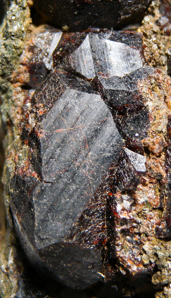 Large black Garnet crystals to 2cm in size on matrix. Uncommon old specimen out of a recently qcquired garnet collection.
