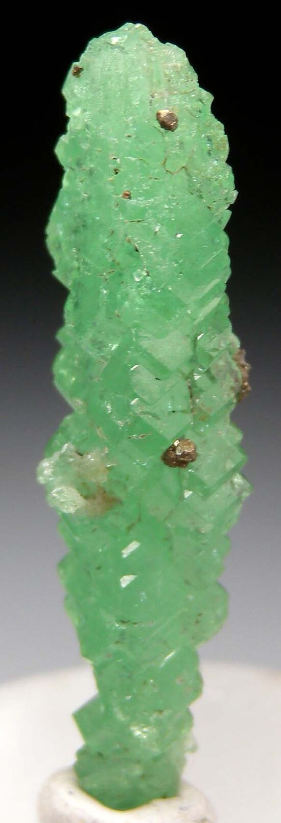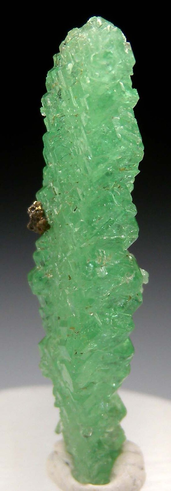 An extremely elongated Tsavorite crystal cluster with attached Pyrite crystals. Fully crystallized all around and undamaged, with just a tiny point of contact on the bottom. This style of Tsavorite is an unusual, wonderful surprise from the Merelani mines made years ago. This is one of the best of this style I've seen.