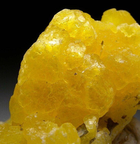 Cluster of bright lemon yellow Brucite from Pakistan. The Brucite is translucent and this specimen has the best, most deeply saturated yellow color of any Brucite I've owned.