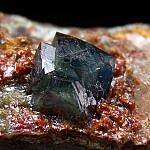 Crystals of blue/green Scorodite on matrix with transparent Selenite. The Scorodite crystals are well isolated and reach 9mm in size. The upper Scorodite is sharp and lustrous, perfect in form. The lower crystal is also excellent, but with some minor chipping. This could be trimmed down into a fine thumbnail.