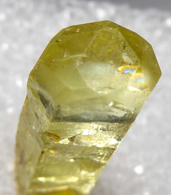 Single gem Heliodor crystal fron Nigeria. Undamaged crystal with etched prism faces and smooth, flat terminatin faces. This is a gorgeous and rare old time Heliodor crystal from the Dennis Ewell collection. I value this at $350 for it's fine color, form and rarity.