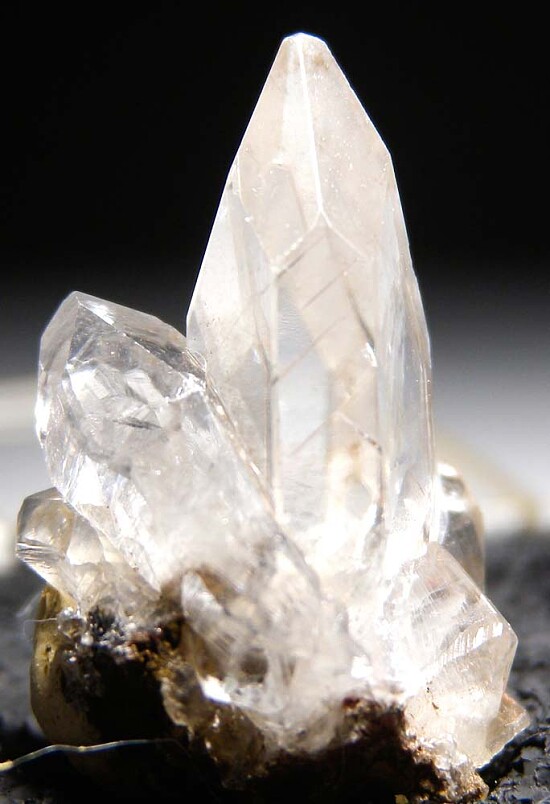 Cluster of transparent scalenohedral Calcite crystals from England. Highly aesthetic crystal group. Ex. Dennis Ewell collection.