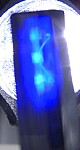 Slender, elongated single Azurite crytstal from Tsumeb. The crystal has good suface luster and is a bright translucent blue when backlit. Undamaged.