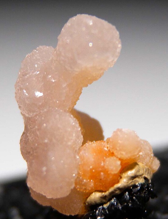Translucent pink spherical masses of sparkling Bulfonteinite.