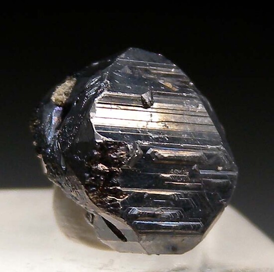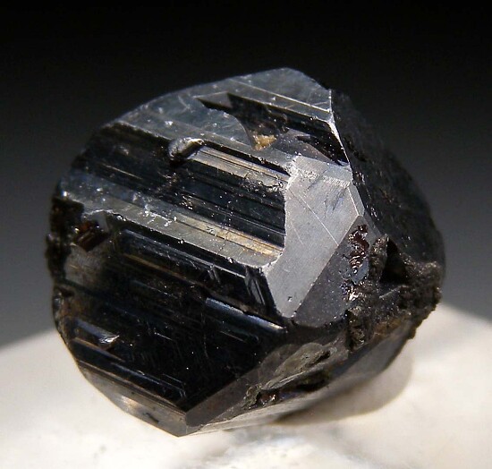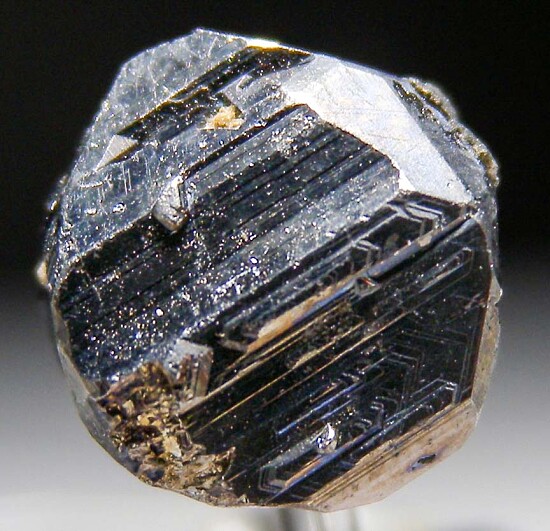 Well crystallized single Andorite. This is a complete crystal that appears to be a floater with sharp crystal faces all around and a deep cavernous area on part of the back side. Many Bolivian Andorites have a fuzzy, fibrous surface luster - this one has smooth, bright silvery metallic surfaces.