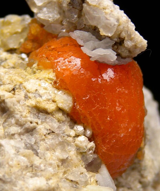 Vivid orange spherical group of Stellarite crystals on matrix from recent finds in Mexico. The crystal group is 2.3cm in size. Though these are fairly new to the mineral world, they are considered some fo the world's best of species due their rich orange coloration.