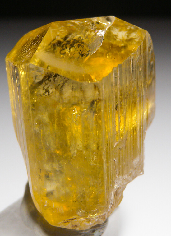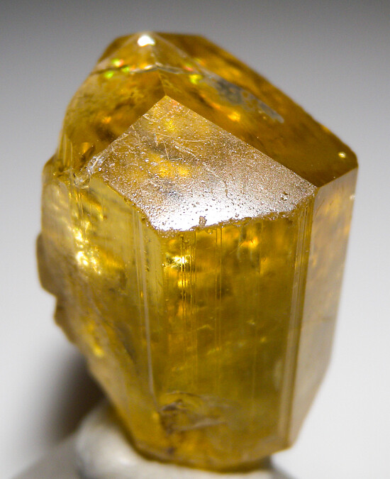 Large and gemmy single golden Scapolite crystal from Tanzania. This a a beautiful large crystal with excellent color but a couple of the termination faces appear to have been polished. Regardless, it's a big gem crystal with lots of visual appeal and highly transparent.