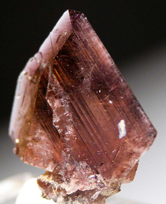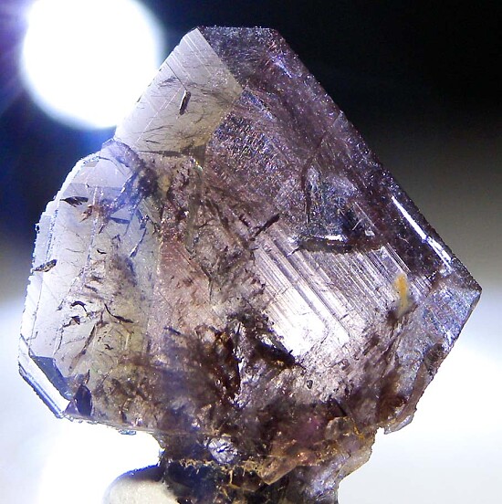 Thumbnail-sized specimen of transparent purple Axinite from the premiere California locality for the species. Gemmy crystal with excellent luster and transparency.