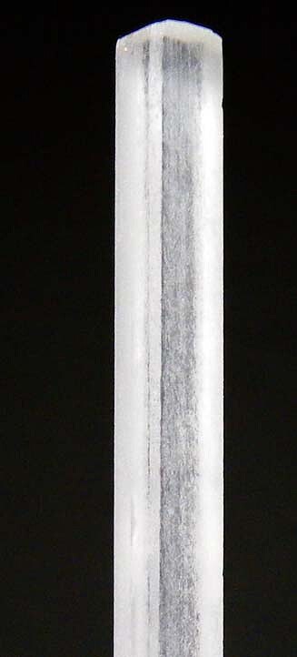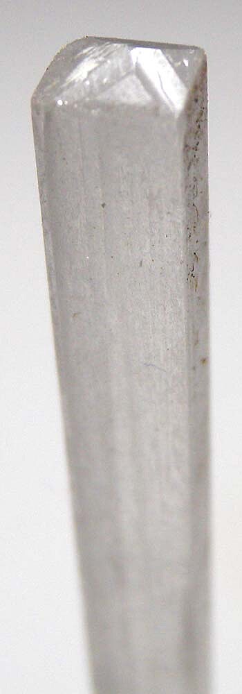 Long translucent to transparent single Natrolite crystal. Perfectly terminated and complete and undamaged. From recent, limited production, these new Natrolites are exceptional for the species for their sharpness and transparency.