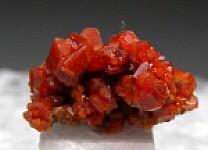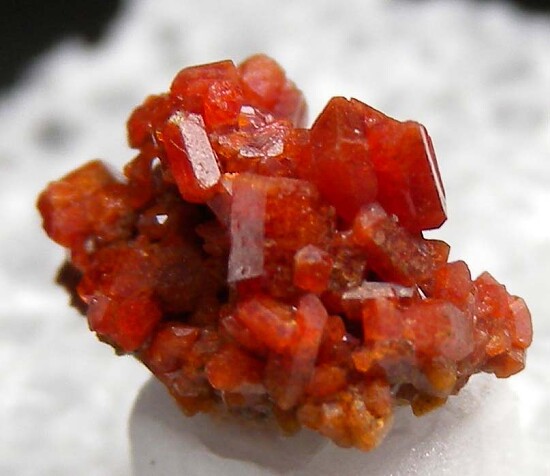 Cluster of sharp, well formed orange/red crystals of Durangite on matrix. The crystals are 2mm in size.