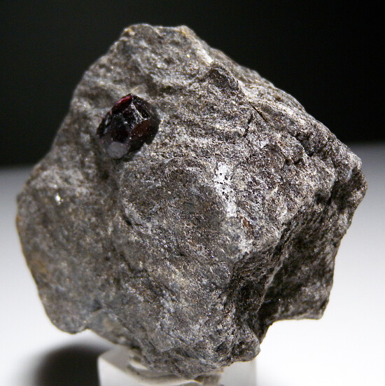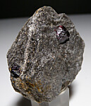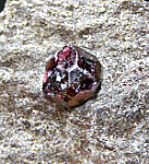 Three deep red Almandine garnet crystals to 1cm in schist. These look similar to those from the well known Wrangell Island locality in Alaska, but they are from the Bella Vista Mine, an island located very close to Wrangell. Good, complete crystals!