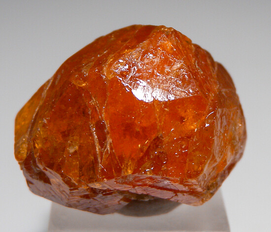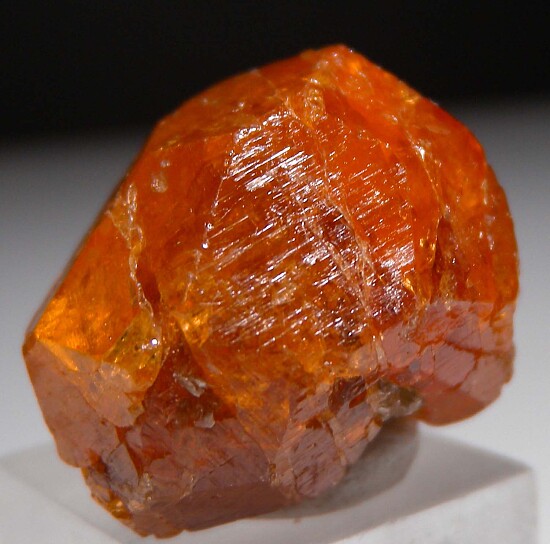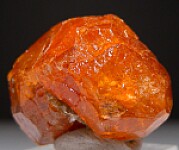 Fine bright orange Spessartine from Tanzania. This is a newly mined crystal (the deposit is being worked but very little is being found). It's a complete all aroound crystal with no black inclusions, gem zones, and excellent color. A really nice one, don't pass it up. Weighs 14.3 grams.