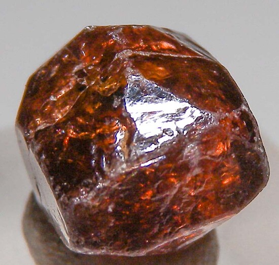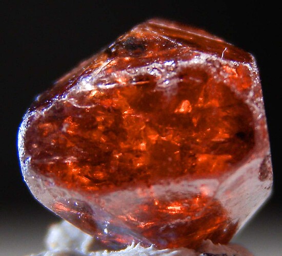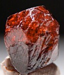 Glassy euhedral single Zircom crystal from recent finds in Mozambique. Complete all around, bipyramidal crystal that is translucent to transparent with wine red color