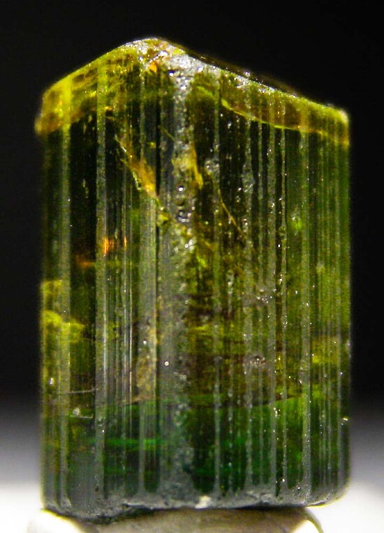 This is my last Congo Tourmaline from a small recent purchase. A well terminated, undamaged single crystal with uniform shape. Highly transparent with a more yellow green color over a deep green. Weighs 2.69 grams. Much better than photos, I value this at at least $100.
