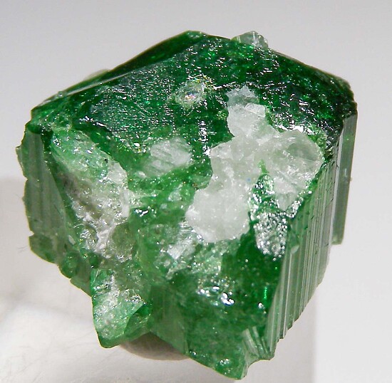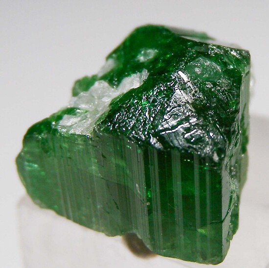 Double terminated, emerald green Tourmaline crystal. Well formed with good color and some attached, and intergrown matrix. 'Chrome' Tourmaline is actually a vanadium rich Uvite/Dravite Tourmaline. Very nice color and the double terminated ones are harder to get.