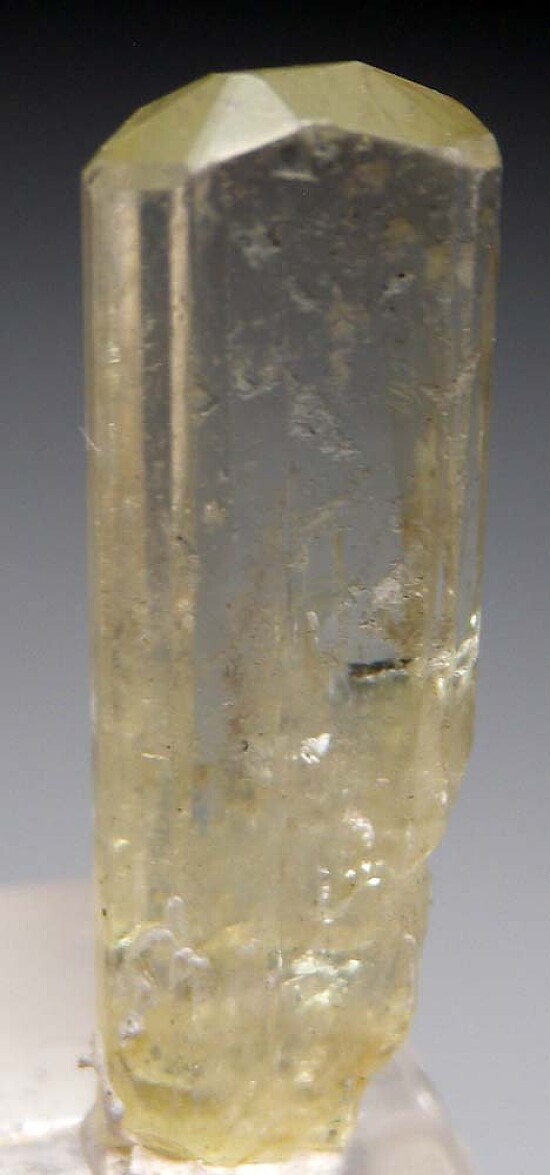 Glassy single green Diopside crystal from the Merelani Tanzanite mines. Highly transparent for it's entire length with a light green color. Complete all around and undamaged with a few indentations from other crystals near the bottom. Much more transparent than most!