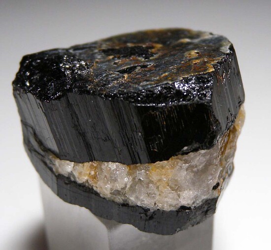 Crystal section of brown Dravite interupted by a layer of white Quartz. This has been nicknamed the 'Oreo cookie' by some.