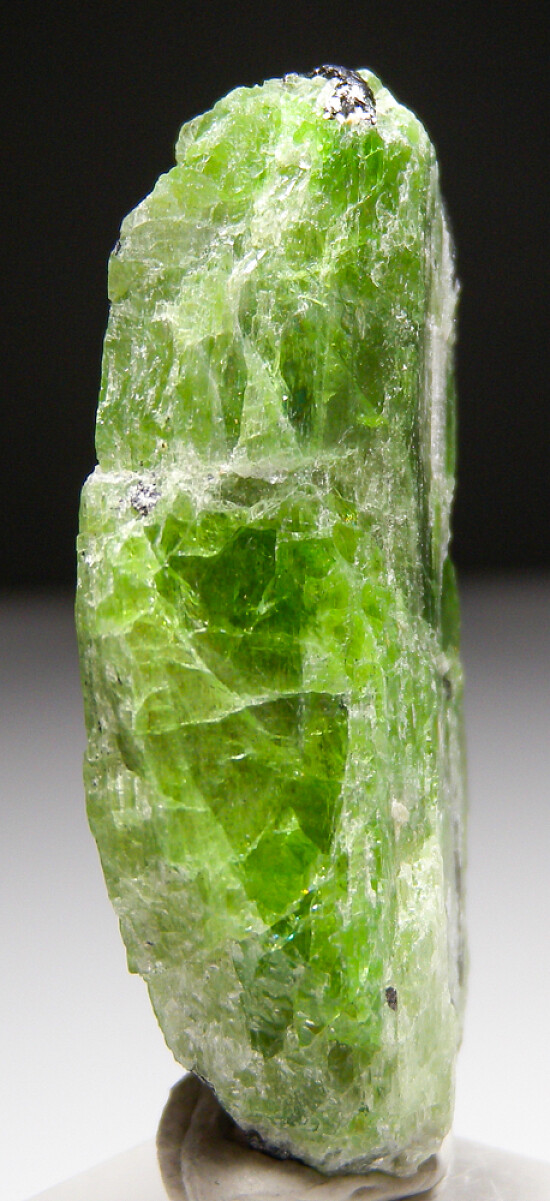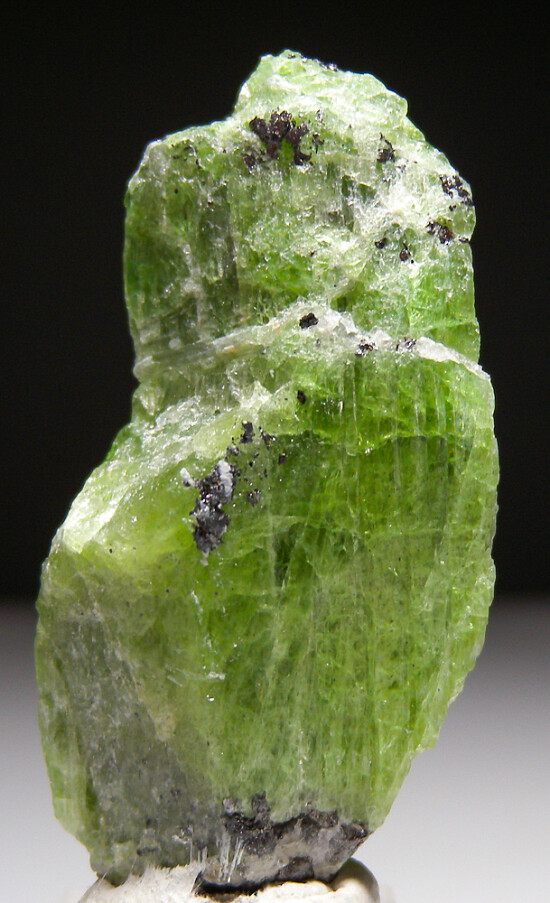 Large single Tremolite crystal with bright green coloration. Translucent green and much larger than most and has some attached Graphite crystals. Like a number of other mineral species from Merelani, these Tremolites are considered the world's best of species.