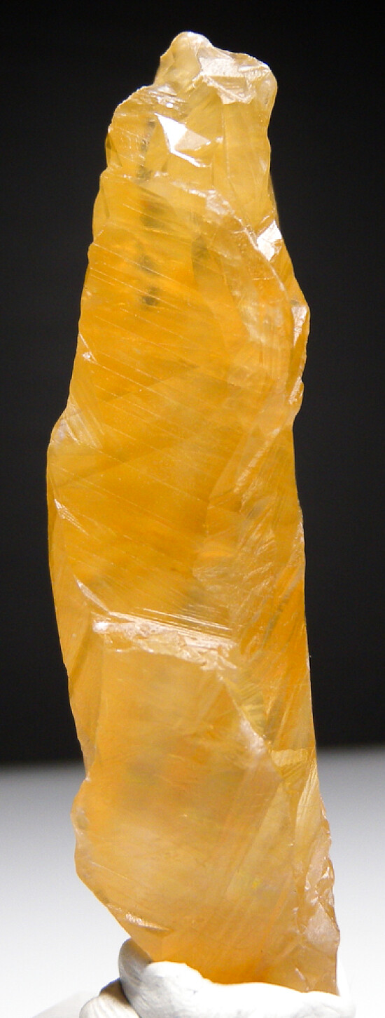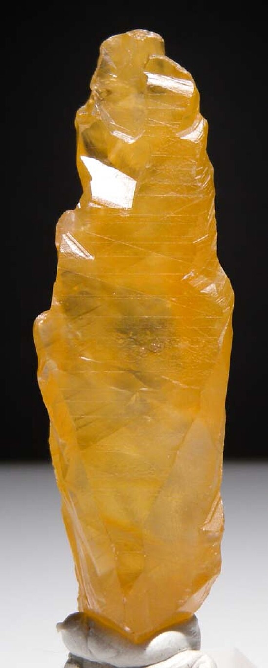Transparent golden Calcite crystal from the Merelani Tanzanite mines.This is uncommon as most Merelani Calcites I've seen have been white. It also has a very nice sculptural form. Nice addition to a Merelani suite or a Calcite collection. Valued at $150.