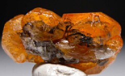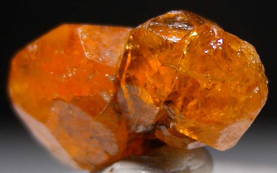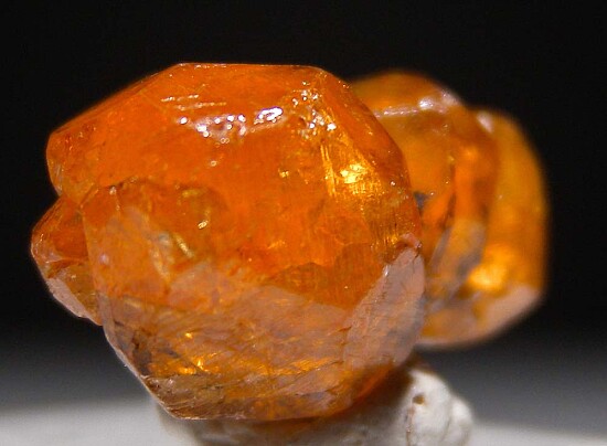 Gemmy orange Spessartine crystals that have grown upn a small piece of orange Kyanite. This is a really neat thumbnail sized specimen with high quality transparent crystals and no points of attachment.