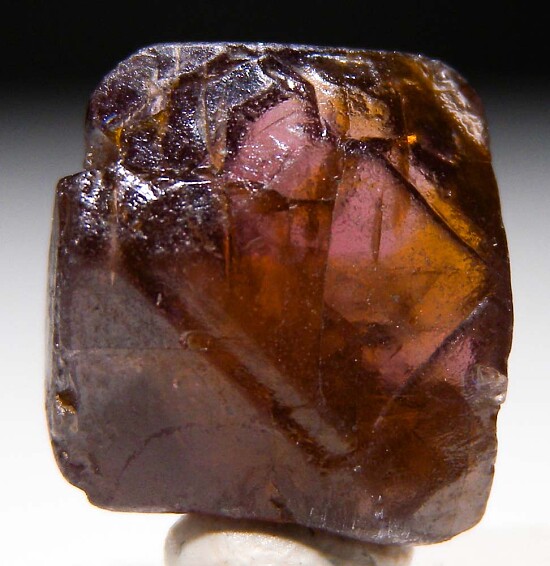 Lustrous euhedral single zircon crystal from recent finds in Mozambique. Wine red in color with good transparency. A floater with crystal faces on all sides.