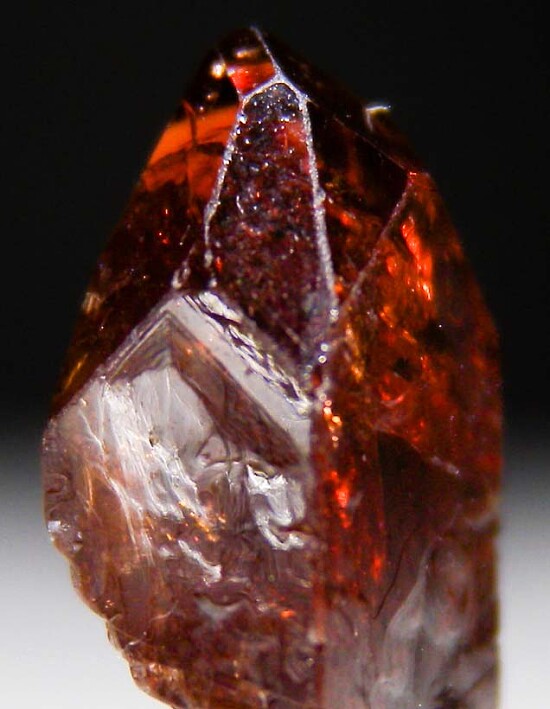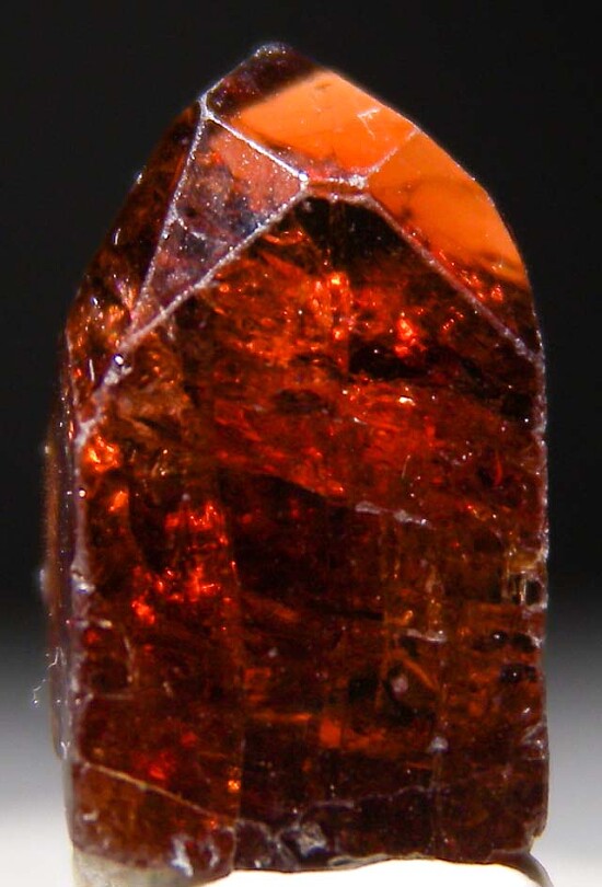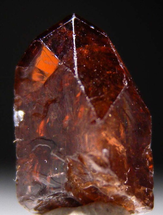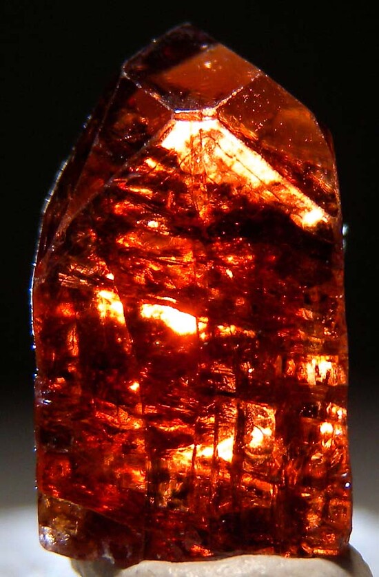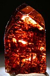 Deep red complete Zircon crystal from Tanzania, complete all around and undamaged. It has a steep pyramidal termination and is nicely transparent when backlit.