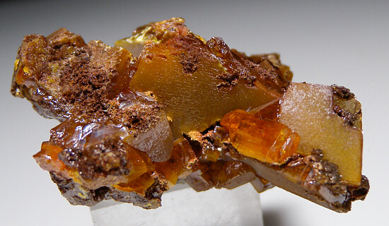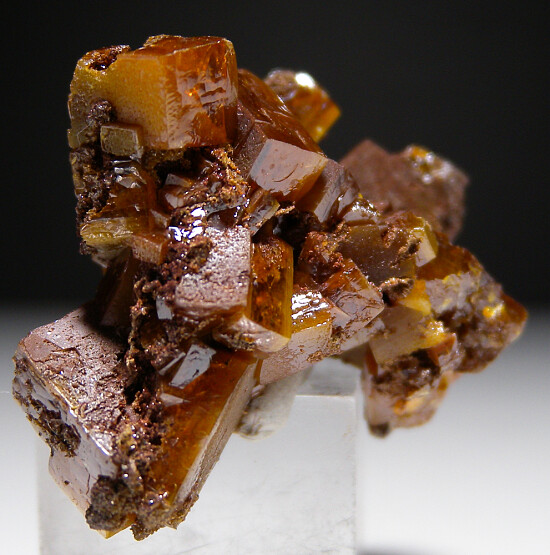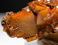 Intergrown group of Wulfenite crystals from Los Lamentos. Typical thick, butterscotch to orange Wulfennite crystals all around with individual crystals to 1.7cm in size. Nice old classic.