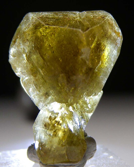Glassy twinned Chrysoberyl crystal from Brazil. Complete all around and undamaged floater.