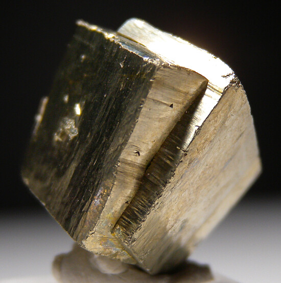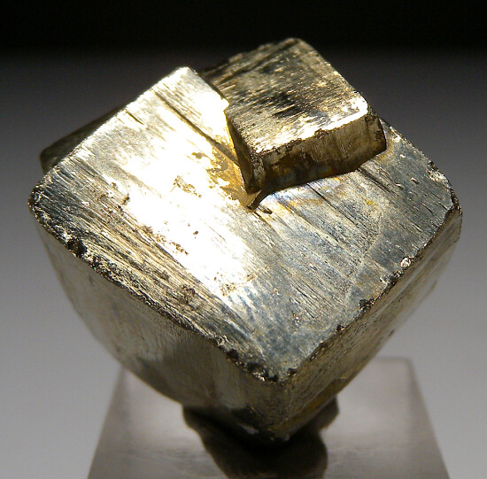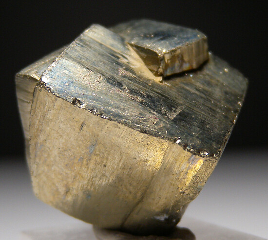 Pentration twin cubic Pyrite crystals. Complete undamaged floater specimen, bright, shiny metallic all around. Ex. Dan Carlson collection.